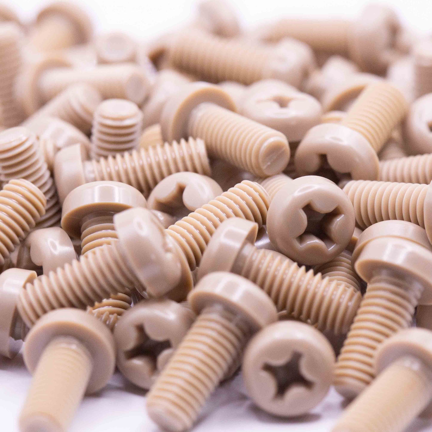 When compared to other polymer screws such as Nylon and ABS PEEK outperforms in mechanical capability, even at very high temperatures.