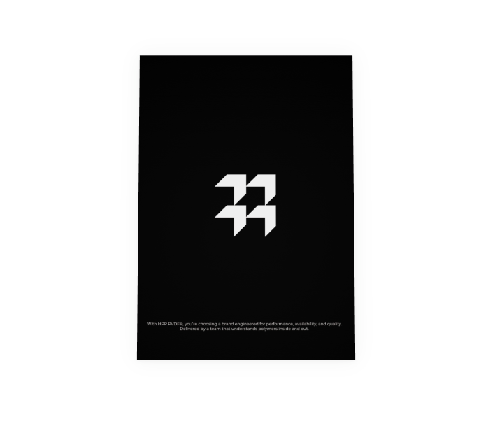 High-quality A4 datasheet that presents the key performance characteristics of PVDF in a clear, professional format. Printed on 250 gsm gloss paper for durability and a premium feel, it includes comprehensive technical data covering mechanical, thermal, electrical, and chemical properties.