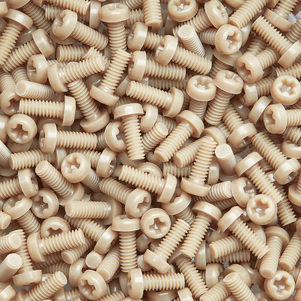 The semiconductor industry also uses PEEK (GF30) pan head screws. These screws are used in semiconductor processing equipment, such as wafer handling equipment and vacuum chamber components, due to their excellent dimensional stability, resistance to chemicals, and high purity properties.