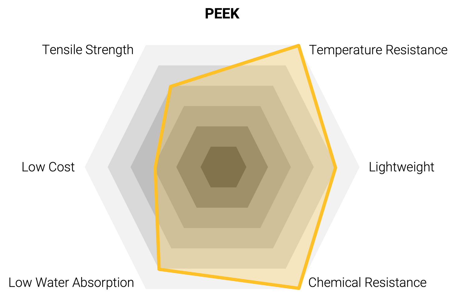 Follow the link below to view our PEEK data sheet. This includes properties such as mechanical, electrical, thermal and chemical resistance.