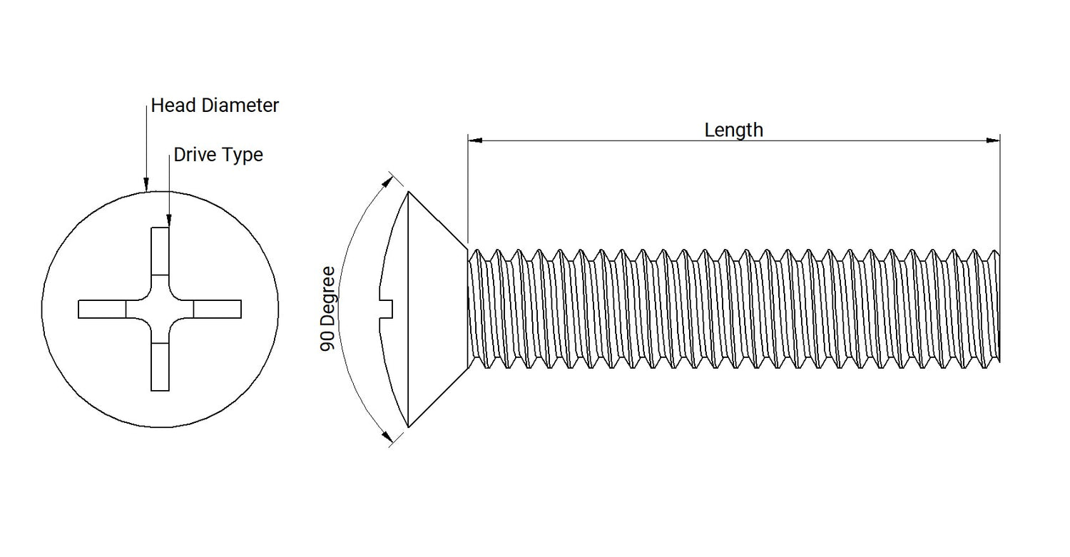 HPP’s Countersunk screws are manufactured with a standard Phillips cross head drive type (ranging from drive #1 to #3), this allows for more than adequate torque for the fastener specification.
