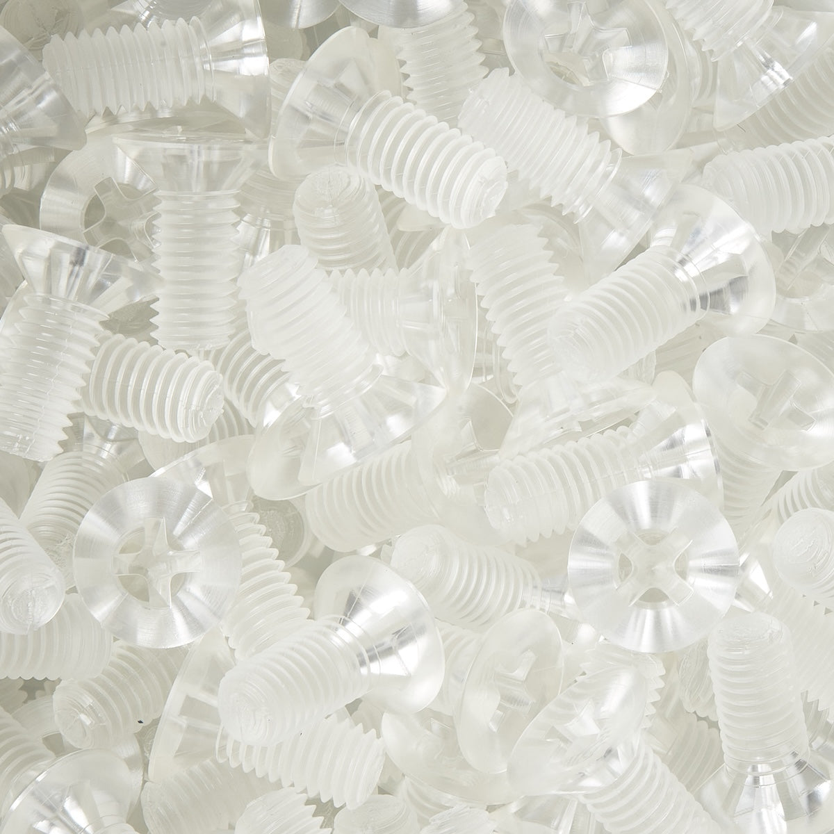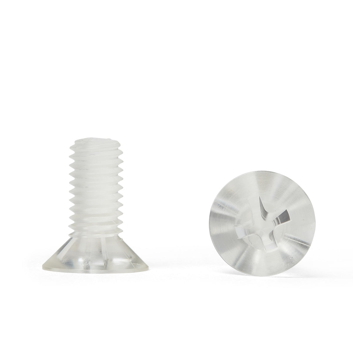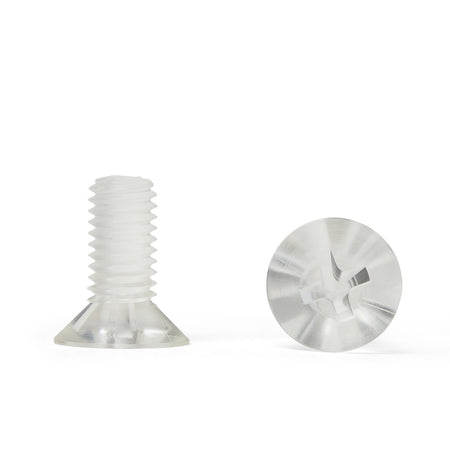 All our Polycarbonate (PC) countersunk (also known as Flat Head) screws featured comply with DIN 965 specification and are transparent in colour.