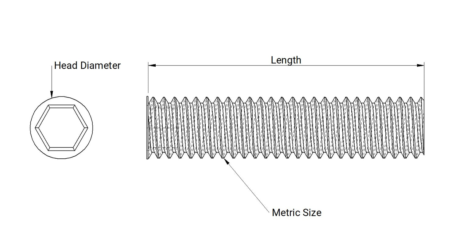 Our PC grub/set screws feature a hexagonal drive-type for use with a hex key (sizes are given in the dimensions table above).