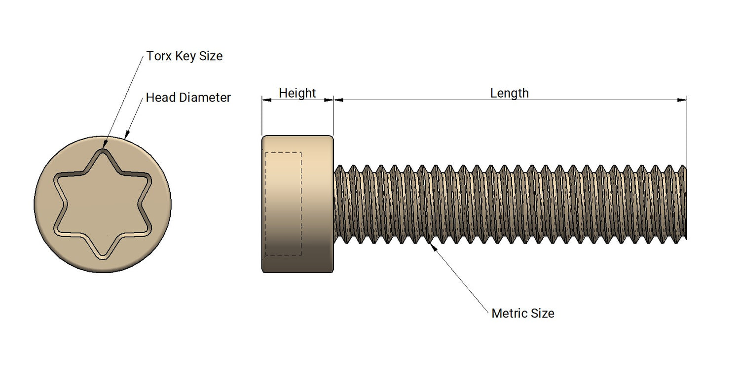 The standard drive type available for these screws is 6-point hexalobular (Torx) drive by use of a Torx key (the drive sizes can be found on the dimensions table).