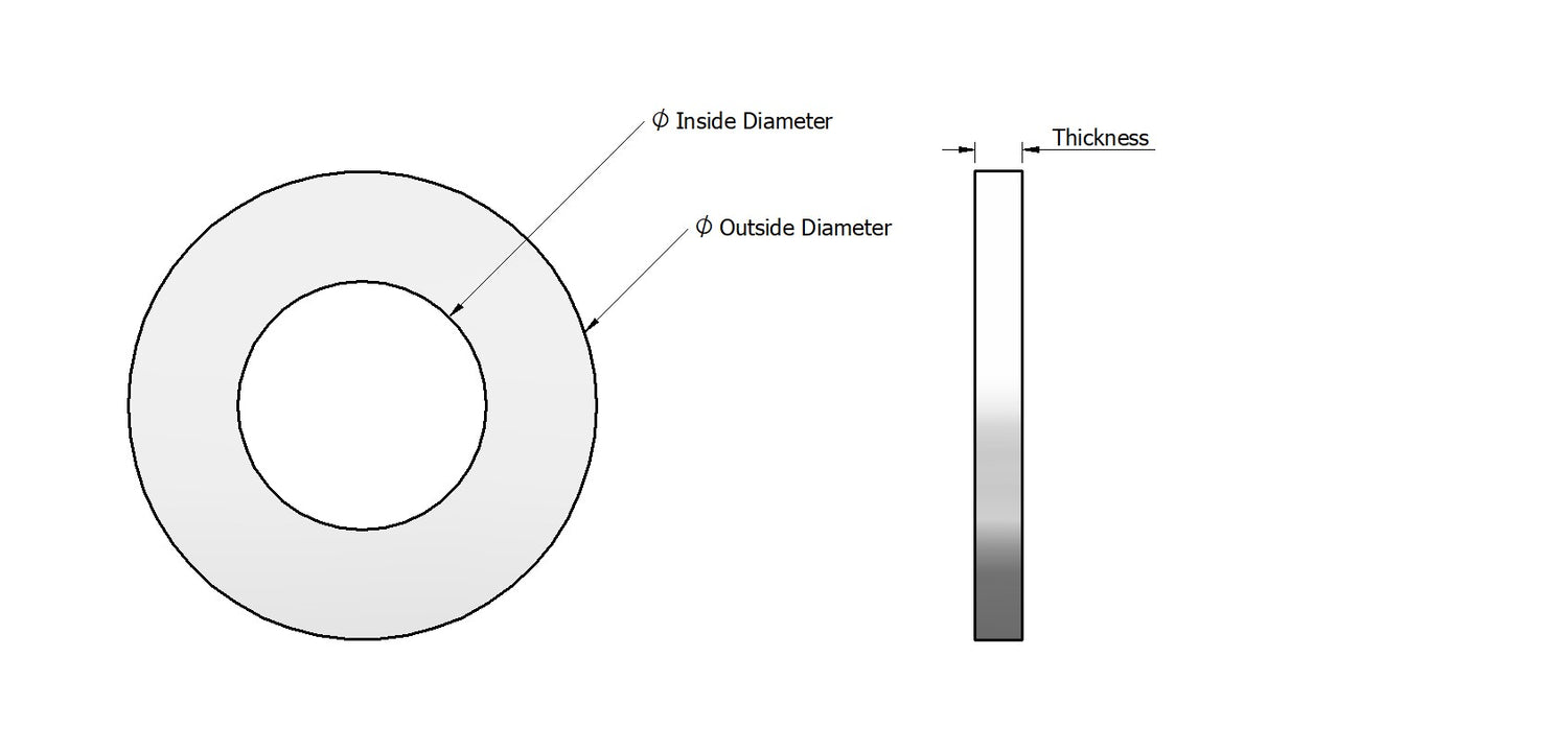 Sizes of PTFE Coated Stainless Steel Flat Washers: