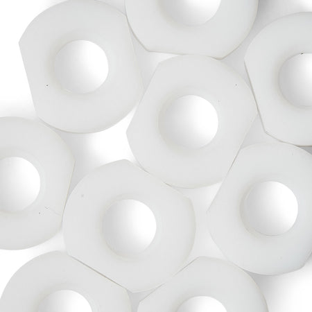 Our PTFE or ‘Teflon’ twin width nuts are manufactured from 100% PTFE, these are not to be confused with coated stainless steel. Using PTFE as the sole material allows the exhibition of exceptional characteristics without compromise.
