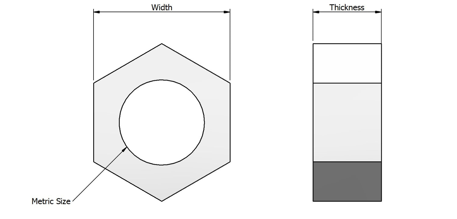 M Size Pitch (mm) Width (Flat-Flat) (mm) Thickness (mm)